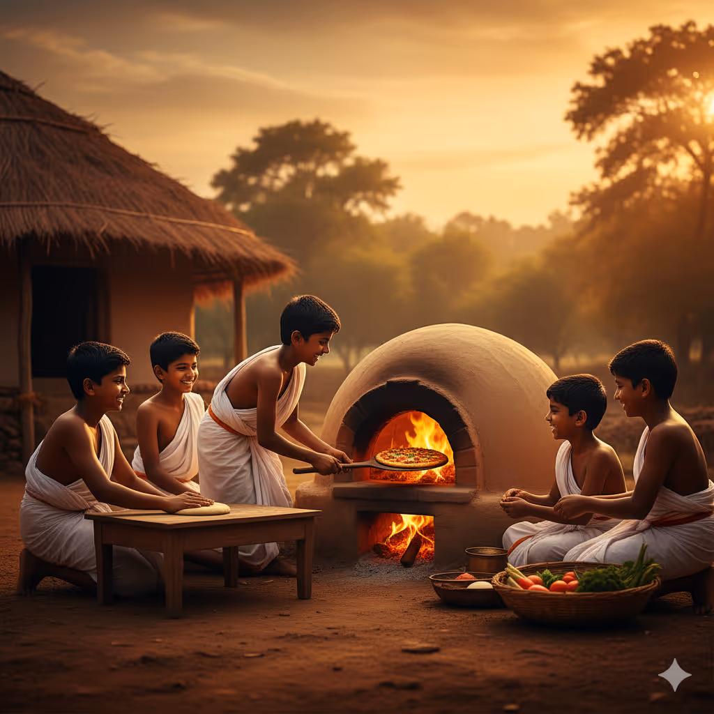 You thought Gurukula kids eat boring food? Today at Hemachandra Gurukula in Karnavati, they were making pizza! Shuddh desi pizza with cheese from the cows in their gaushala and of course no onions/garlic. Tasted great too!