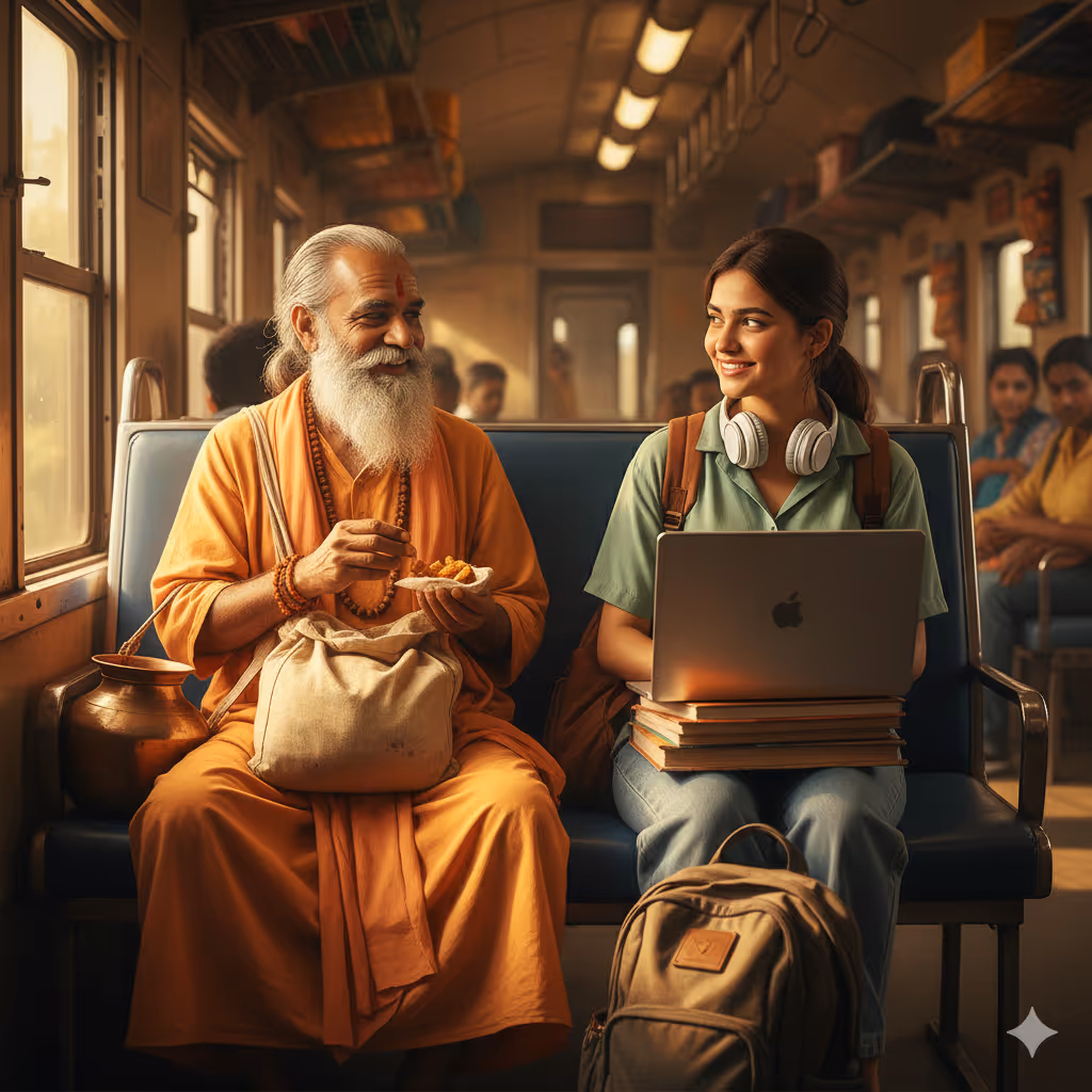 During my travels in India in the past 2 months, I have had many spontaneous conversations with people that warm my heart even now as I remember them. One such memorable instance was on a flight from Varanasi to Bengaluru when I found myself sitting on a middle seat between a yaatri and a student.