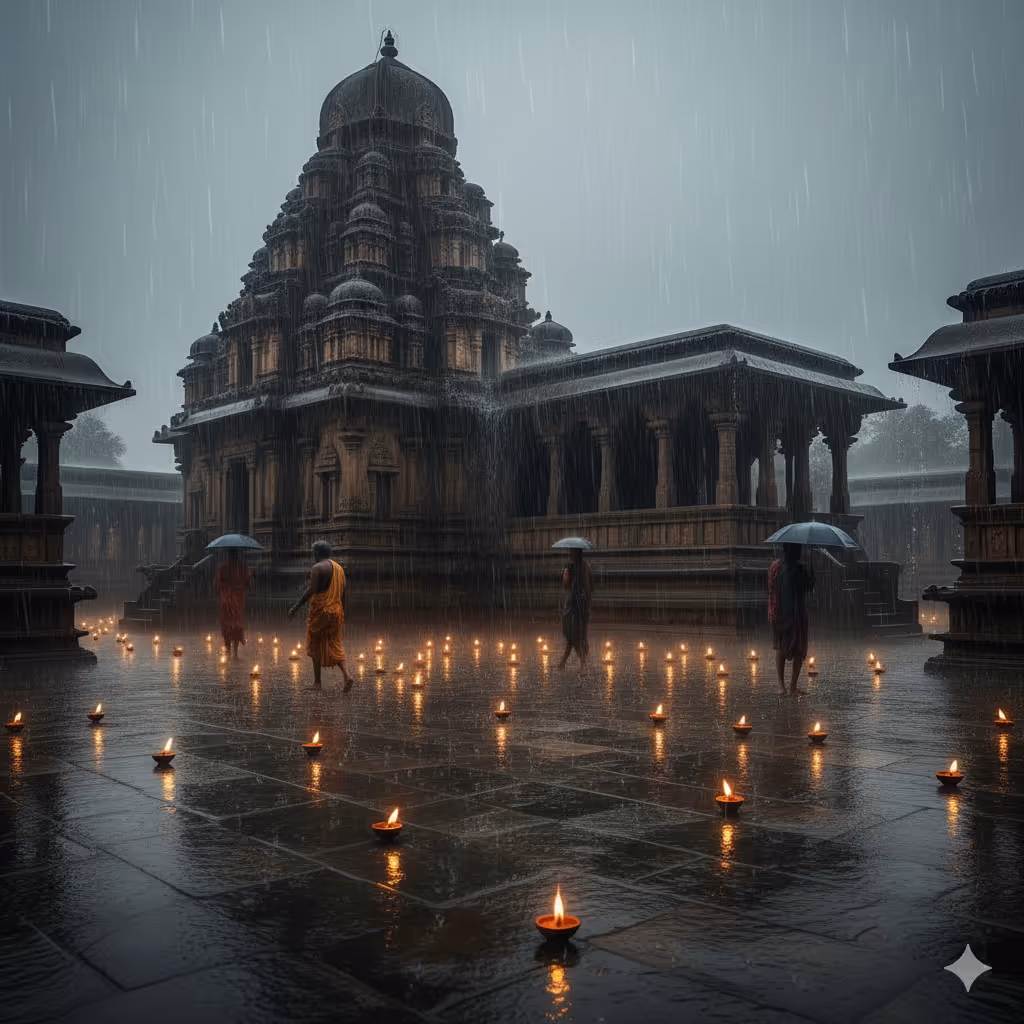Surrounded by heavy monsoon rain all around in the coastal city of Gokarna and sitting in the shade of the Mallikarjuna (Shiva) temple, it was an unforgettable experience. Everything felt right with the world for that brief time.